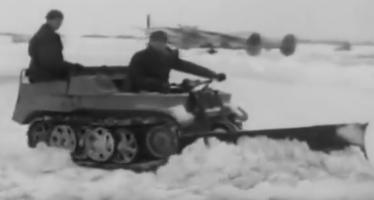 Front made snow plow used in the Ardennes, with tyre chains. |